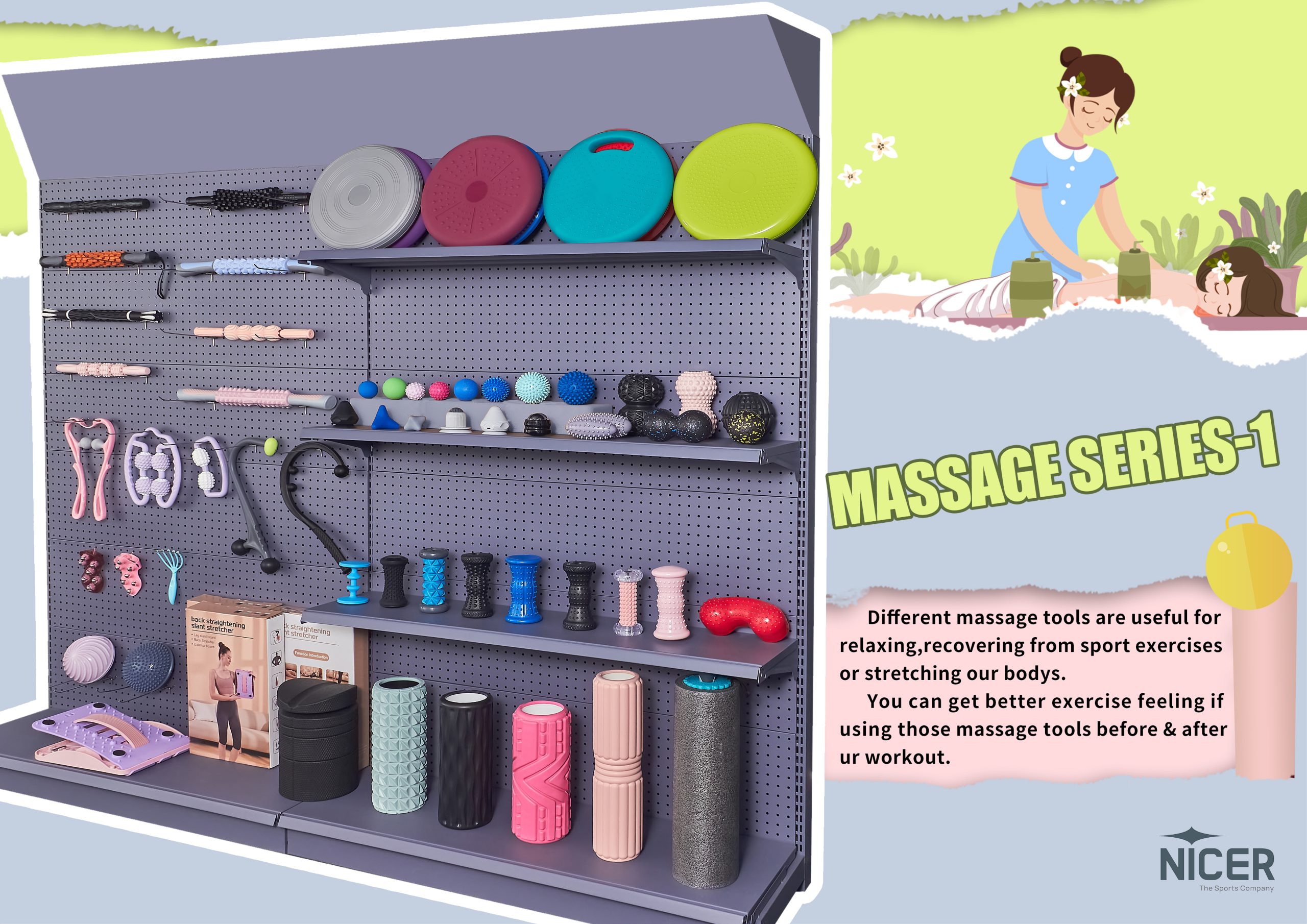 Different massage tools are useful for relaxing,recovering from sport exercises or stretching our bodys.You can get better exercise feeling if using those massage tools before ...